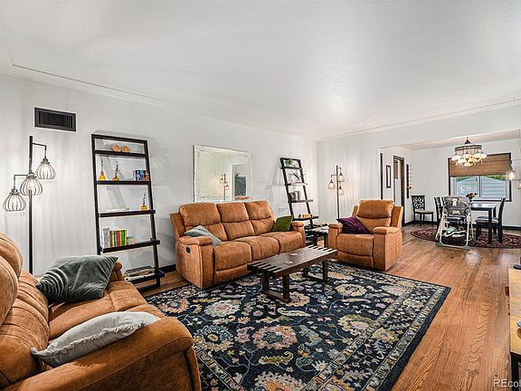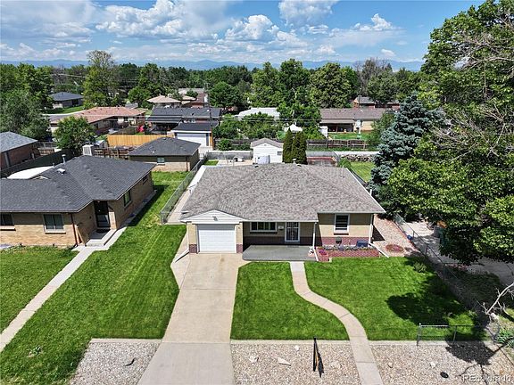 Welcome to this charming brick ranch tucked into a quiet, established neighborhood just minutes from the Anschutz Medical Campus and Children’s Hospital. Thoughtfully maintained and full of personality, this home sits on a beautifully landscaped lot with lush new sod in both the front and back yards—perfect for outdoor play, gardening, or relaxing weekends under the large covered patio. Inside, you'll find original oak hardwood floors, fresh paint throughout, and an inviting layout with great natural light. The living and dining areas flow effortlessly into the kitchen, which includes all appliances and fun vintage touches. The finished basement with new carpet adds serious versatility with a spacious rec room (complete with a retro wet bar!), a non-conforming third bedroom, ¾ bath, laundry area with utility sink, and a separate workshop for crafts or hobbies. Need extra space for gear, tools, or creative projects? You’ll love the 24' x 12' outbuilding with electricity—a dream setup for a workshop or storage. Recent big-ticket updates include a new furnace (2023), A/C (late 2024), water heater (2022), roof (approx. 2021), and electrical panel. There’s nothing left to do but move in and enjoy. Commuters will appreciate easy access to I-225, being 5 minutes from the A-line RTD light rail station and 15 minutes from Denver International Airport. You are minutes' drive to Stanley Marketplace and Central Park, and close to shops, dining, and parks. Whether you're a first-time buyer, downsizer, or investor, this home offers comfort, functionality, and unbeatable value in a convenient location. 3D Virtual Tour Available