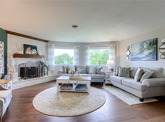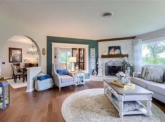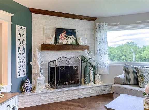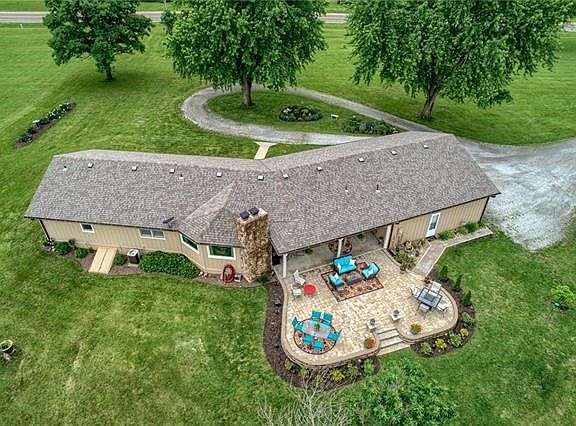Yearning for the tranquility of country life w/enough room for horses? Just 25 min S of St Joe & 30 min N of Kansas City this completely updated fabulous true ranch w/ wood & stone facade is situated on 16+ beautiful acres! Access to Castile Creek for those who love to fish! Ideal location for commuting right off 169 Hwy! Enjoy watching deer, turkey & other wildlife from your own back porch! Just 20 min. from Smithville Lake! Open foyer boasts solid wood flooring throughout hallway, living, dining & kitchen. Unique open floor plan. Living room features gorgeous, refaced wood burning FP of stacked stone accented w/marble hearth & walnut mantle. The FP is complimented by panoramic view through 2 picture windows makes a beautiful statement upon entering. Custom patio doors in formal dining open to huge back porch & 20'x30' adjoining paver stone patio. If you love entertaining, this stunning area is sure to please. Newly remodeled eat-in kitchen offers white refaced shaker style cabinets w/lovely quartz countertops, ceramic tile backsplash, a copper farm sink, pantry, pull-out shelves, custom walnut shelving, & new stainless appliances that stay! Updated main floor laundry room located off kitchen. Large master suite offers double closet/dressing area leading into updated ceramic tile bath. Hall bath has new cabinet w/double sink, accented w/Carrara marble top & tile. HUGE finished LL family room offers almost double the living space! You'll love the adjustable lighting, media area & large game area for entertaining! Wet Bar boasts hickory cabinets & shelving providing ample storage, quartz countertops, ceramic tile backsplash, stainless sink & stainless refrigerator. LL FP boasts beautiful tile & quartzite hearth. LARGE storage room could be transformed into workout space, bedrooms or office w/access to outside. 3 car garage & 12'x20' work shed w/electricity & concrete floor. Quality materials from top to bottom! Truly too much 'new' to list! Absolutely move-in ready!
