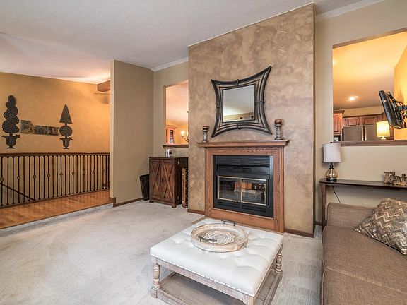 Beautiful ranch style home showcasing unique interior features and professional exterior landscaping. The home includes 4 bedrooms, 3 bathrooms, main floor laundry and walkout lower level. A double sided fireplace can be enjoyed from the main floor living room or while entertaining in the kitchen. Hardwood floors flow into the kitchen where you'll find many custom details, updated appliances, and an island with room for additional seating. Large dining area offers plenty of space and overlooks the backyard through a bay window. Main floor master bedroom features a private bathroom with jetted tub and plenty of closet space. Lower level family room offers additional space for entertaining and is perfect for a cozy winter night by the gas fireplace. Many updates have been made through the years and pride in ownership shows. Located on a quite street overlooking the coveted Old Orchard neighborhood surrounded by mature trees.