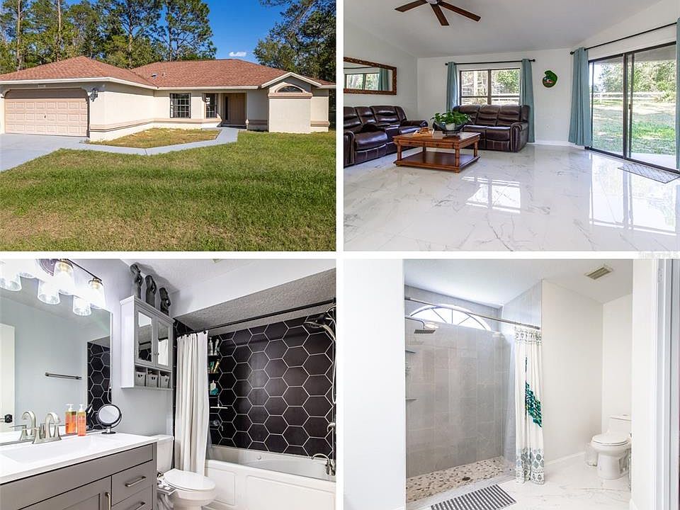 Welcome to your dream home in the heart of Marion Oaks! This beautifully updated 3-bedroom, 2-bathroom gem is a perfect blend of modern comfort and a vibrant community lifestyle. Step inside to discover the spacious, open split floor plan with new 32 x 32 ceramic tile throughout, giving your home a sleek and contemporary feel. The bathrooms have been thoughtfully updated, boasting a stand-up shower in the master and a luxurious jacuzzi tub in the second bathroom. With spacious walk-in closets, high ceilings, and stylish new ceiling fans and lighting fixtures, every detail in this house has been designed for your comfort and convenience. Step outside onto your covered patio and enjoy the Florida sunshine in your private outdoor oasis. Plus, there's ample space on the side to park your boat or RV, making it the perfect home for outdoor enthusiasts. Not to forget, a brand-new roof was installed in 2021, giving you peace of mind for years to come. But the perks don't stop there! Marion Oaks residents are treated to the Marion Oaks Community Center, featuring an auditorium, meeting rooms, a library, and various recreational facilities, including lighted multi-purpose sports courts. With a fire station nearby and a wide array of houses of worship, clubs, organizations, and civic groups, you'll find yourself immersed in a welcoming community that offers everything you need. Don't miss out on this incredible opportunity to make this house your forever home in Marion Oaks!