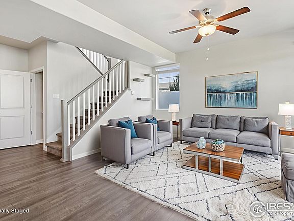 MOVE-IN Ready, End-unit Townhome with oversized garage and mountain views. Basement could easy be used as Mother-in-law suite or 4th bedroom. Beautifully appointed end-unit townhome in the desirable Brookstone community of Milliken! Lush front landscaping and a welcoming front porch set the tone, complemented by a side yard-maintained by the HOA-for added green space without the upkeep. Inside, the open main floor flows seamlessly between the spacious living room, dining area, and chef's kitchen. The kitchen features stainless steel appliances, quartz countertops, a center island with sink and seating, and a pantry for extra storage. A built-in mudroom area with storage and a convenient half bath sit just off the attached oversized two-car garage, already equipped with 220 for car charging. Upstairs, retreat to the primary suite complete with a private en-suite bath and a massive walk-in closet. Two additional bedrooms and a full bath provide ample space for family, guests, or a home office. The high-end finished basement expands your living space with a large media room, wet bar, and an updated 3/4 bath featuring a luxurious steam shower. Enjoy mountain views, community trails, and a peaceful neighborhood that's still close to shops, dining, and everyday conveniences. This home offers style, comfort, and low-maintenance living all in one!