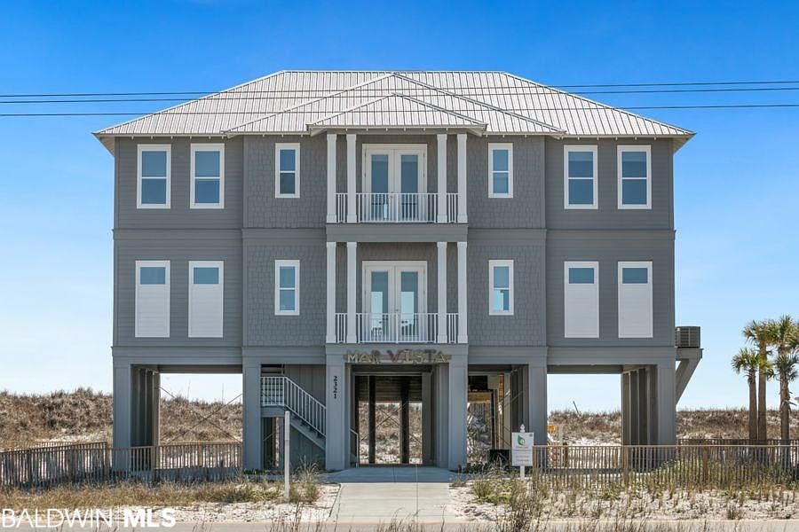 "MAR VISTA" This spectacular, new custom-built 8 bedroom/8.5 bath gulf-front home just came on the market and won't last long. Ideally located on West Beach in Gulf Shores, this stunning home sits on a 100-ft. lot offering breathtaking views, a private, elevated boardwalk to the beach, and a gulf-front private pool on a spacious Ipe sundeck. White oak oiled floors throughout. The gourmet kitchen features stainless appliances, granite countertop, double basin apron front sink, and is open to the living and dining areas of the home. An elevator makes accessibility to the bedrooms easy, with all rooms enjoying expansive views of the sparkling Gulf or Little Lagoon to the north and access to two covered gulf-side balconies and two lagoon-side balconies. All baths feature custom tile and granite countertops. This beautifully decorated home, with careful attention to detail, is offered fully furnished, including the unique furniture designs of Charles Phillips Antiques, custom roller shade window blinds and state of the art electronics. Ideal as a vacation rental home, the estimated projected rental income is $286,000 per year.
