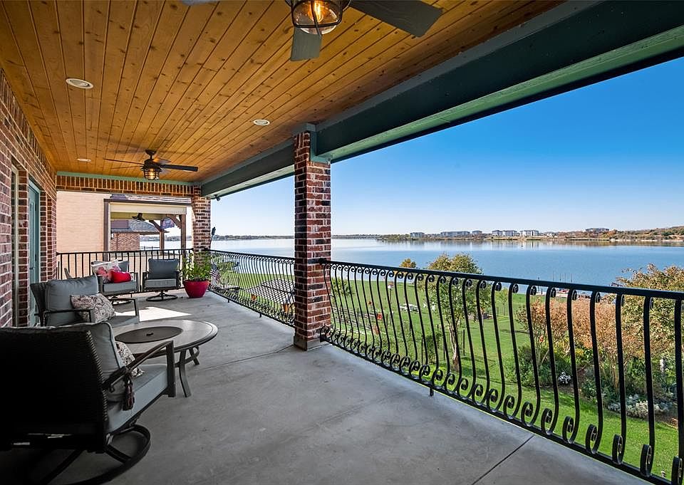 Like-new custom-built smart home backing Lake Ray Hubbard! The home's custom character is evident from the moment you drive up. Passing through the soaring entry way, you'll enter into the home's wide open living area, complete with wet bar, ornate fireplace and floor-to-ceiling built-in bookshelves. The bright white kitchen is fully loaded with sleek granite countertops, stainless steel appliances, farmhouse sink and custom cabinetry. Second-story master suite opens to the second story balcony, providing views of the sprawling back yard and lake, and comes with dual vanities, jetted tub and a huge walk-in shower. Covered patio with stone fireplace offers a second area from which to enjoy the lake views.
