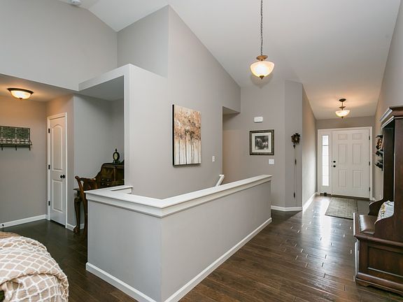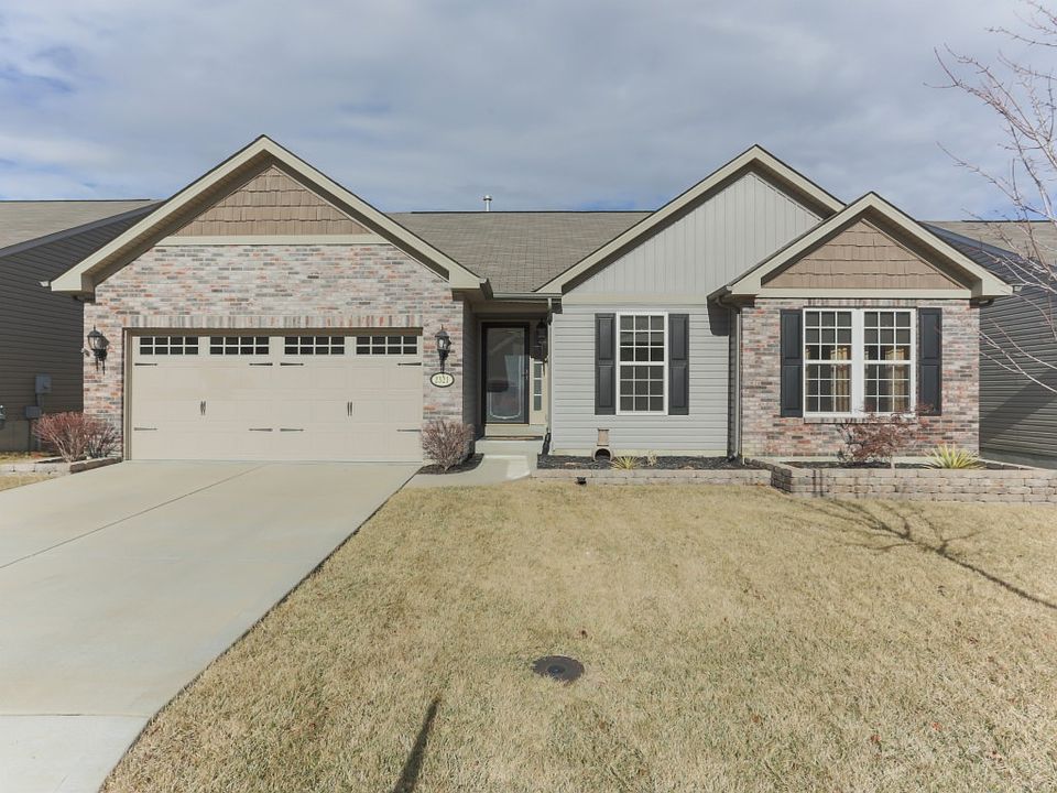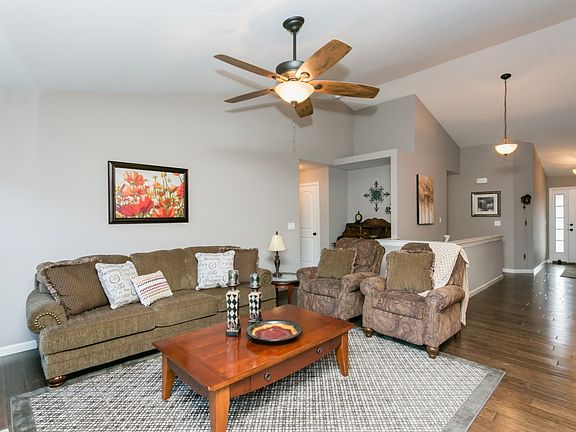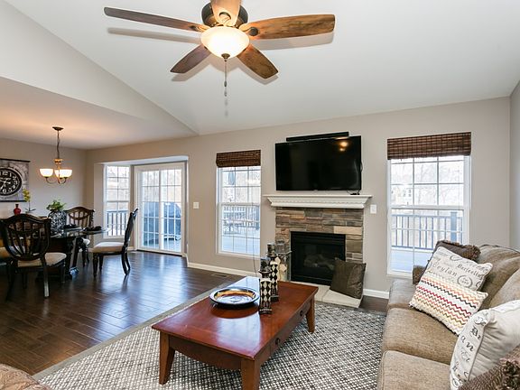 Gorgeous ranch home loaded with amenities including a finished walkout lower level! 3 bedrooms & 3 FULL bathrooms. Hardwood floors, vaulted ceilings & stone surround gas fireplace creates a warm open living space. The kitchen features granite countertops, s.s. appliances, gas range, eat-in kitchen, oversized island with additional seating & pantry. 1st floor laundry room. French doors & coffered ceiling add to this grand master bedroom suite, including a walk-in closet. 2 additional bedrooms feature upgraded ceiling fans. Partially finished lower level provides an entertainment space, possible 4th bedroom & full bathroom. Walkout to your flat backyard perfect for entertaining featuring a custom stamped concrete patio & oversized composite deck. Beautiful wooded views! 2-Car garage has been insulated, drywalled & showcases an extension. Blown insulation in attic over garage. Newer garage door. Upgraded landscaping. Overall, this home has been extremely well maintained by owner.