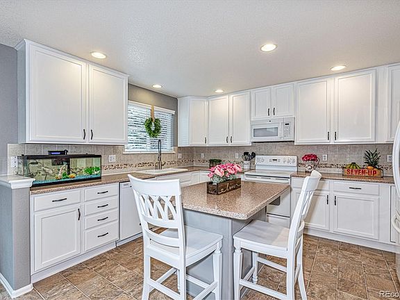 ~~~~ 2,225 Square Feet brings you 4 bedrooms & 3 bathrooms. ~~~~ A spacious kitchen with dining area, an abundance of cabinets & sprawling counter space. ~~~~ Family room w/fireplace, book shelves & arched inset for your television ~~~~ Built-in sound system and seller will leave components ~~~~ Plenty of windows so every room brings in great light & sunshine ~~~~ Main floor laundry & guest bathroom ~~~~ Large Master Bedroom w/good wall space for furniture, ceiling fan & large walk-in closet ~~~~ 5 piece master bathroom w/double vanity ~~~~ 2nd, 3rd & 4th bedrooms of good size each with their own personalities ~~~~ Main bathroom with double vanity and light bar ~~~~ Large open basement to accommodate any need for extra space or storage. ~~~~ Super back yard with deck stepping down to the patio, a pond w/fish & water fall and lots of greenery ~~~~ All creating a pleasant habitat to spend time in. ~~~~ Quick and easy access to E-470 and Southlands shoppings areas, theatre, restaurants, everything you need. ~~~~~~~~~~~~~~~~~~~~~~~~~~~~~~ All measurements stated in listing are approximate and should be verified by Buyer or Buyer's Agent. ~~~~ Play house and/or trampoline could possibly be, maybe, be negotiable. Extra Inclusions: Cabinets & work bench in garage.
