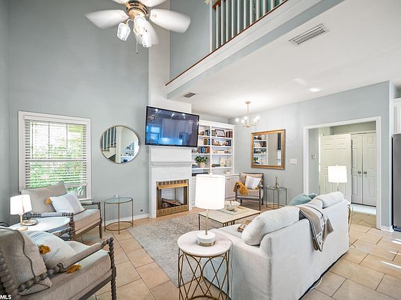 Welcome Home! Right out of a magazine two bedroom w/flex room Loxley home! Property is located on one acre with no HOA! As you enter your property you are welcomed by a warm and bright open floor plan! Living room that opens up into your eat in kitchen is bright and updated. Living room features tile flooring, crown molding, and built in book shelf. Home has been painted throughout inside with new light fixtures throughout. Living room that opens up into your kitchen features white cabinets, marble counter tops, marble island with seating, stainless steel appliances, new cabinet hardware and plumbing fixture! Your primary suite is located on the main level! Primary bedroom is spacious w/walk in closet. Off of your primary bedroom is your flex space. Great use for a home office or sitting room that overlooks your private back yard, ideal space to start or end your day! Primary bathroom features walk in shower. Second bedroom suite is located on the second floor. Second floor features wood flooring and spacious bedroom with seating area! Second bathroom is also located on your upper level that features a shower/tub combo and tile flooring! Home is located on an acre of land with great privacy! Great attic storage as well along with your backyard storage shed! Schedule your showing TODAY! This one wont last!