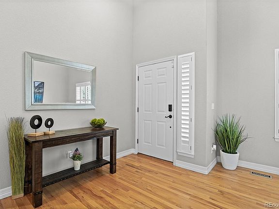 Discover unparalleled luxury in this stunning single-family residence nestled in the coveted Canterberry Crossing community of Parker. This home offers 5 bedrooms, 4 bathrooms, an expansive basement, and much more. The main level offers a living and dining room with two story high ceilings, bay windows, and stunning hardwood floors. The kitchen includes quartz countertops, exquisite white tiled backsplash, all stainless steel appliances, a kitchen island/breakfast bar, and a beverage bar tucked in the corner that includes a handy wine fridge. The Family Room features built-in shelving with surround sound and a warm gas fireplace. The upper level, where you'll find 4 Bedrooms and 2 bathrooms, includes the Master Suite, which consists of high ceilings and a master ensuite with a walk-in closet, a double vanity sink and both a tub and stand-up shower with a built-in bench. The beautifully finished basement offers a versatile Family Room, a multi-use gym/bar area and wet bar. You will also find a spacious Bedroom with double french doors, perfect for use as a private study.