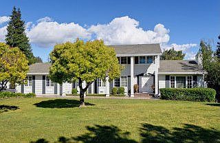 Gorgeous Colonial with Guest House and Pool on Huge Level Lot! 2-story home with 5 beds/3 baths and a separate 1 bed/1 bath guest cottage with kitchen. Stately living room with fireplace, plus a formal dining room. Gourmet kitchen with quality appliances, spacious breakfast room and adjoining family room with fireplace. Fabulous 100\% flat lot with secluded grounds and sparkling pool/spa.