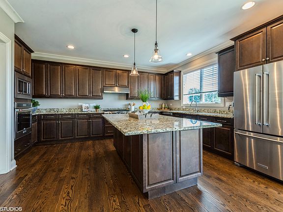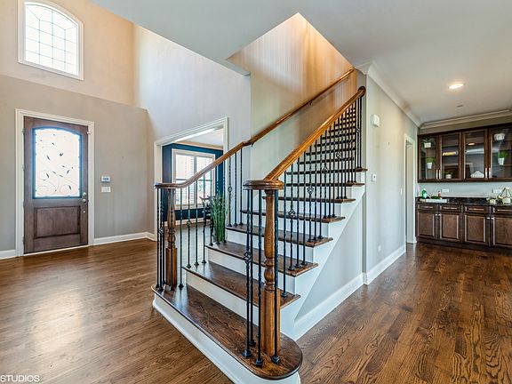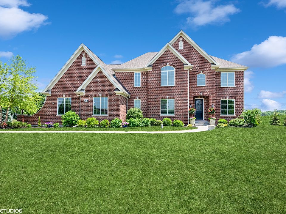Nestled in the tranquil and prestigious neighborhood of The Enclave of Heritage Estates, this newer, stately, brick home sits on just over 1.25 acres of pure paradise and features an impressive 3 car side load garage, 9ft ceilings on all 3 levels with a flexible floor plan for all including a main floor bedroom, or home office, with an adjacent full bath. Enter the grand two-story foyer and discover the richly refinished hardwoods floors and a spacious dining room with a dry bar just around the corner. The gourmet chef's kitchen will impress the culinary enthusiast appointed with high end stainless appliances, butler's pantry, loads of counterspace, an island for guests to gather around and an eating area to hold the largest of tables plus direct access to the expansive backyard. The inviting family room is open to the kitchen and highlighted by natural light filtering through the new plantation shutters and a gas fireplace accented by beautiful crown molding. A convenient mudroom and separate laundry room with utility sink complete the main level. Once upstairs immerse yourself in the massive primary bedroom ensuite with 2 separate walk-in closets and a tastefully designed spa like bathroom with 2 separate vanities, a soaking tub, a separate glass enclosed shower and a room for the water closet. The three additional bedrooms are spacious, two with walk-in closets of their own, two share a jack-n-jill bathroom and the other has its own ensuite. The enormous basement, which is plumbed for an additional bathroom, has tons of potential, or can just be used for loads of storage.