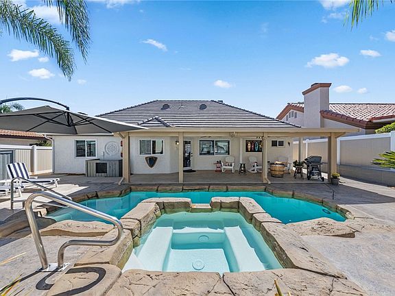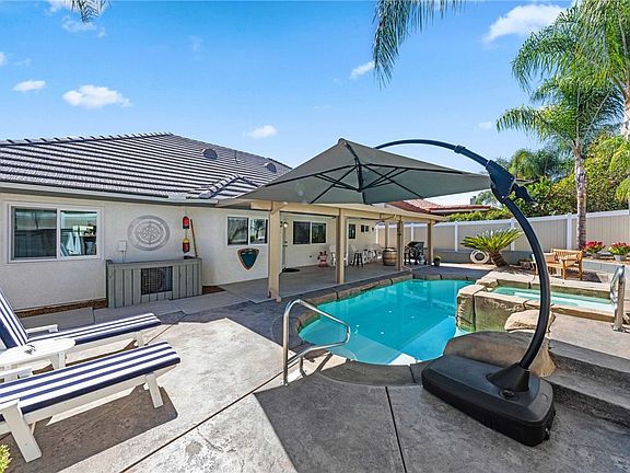Back On The Market! Buyer Could Not Perform! Welcome to this absolutely stunning, completely remodeled home in the highly sought after community of Canyon Lake. This home underwent a thorough renovation in 2023 with updates to nearly every feature reflecting today’s standard of living. Updates include an all new kitchen, bathrooms, doors, windows, flooring, lighting, heat and air conditioning system, water heater, pool plaster, pool equipment, landscaping, fencing and more. Upon entering you are greeted by vaulted ceilings and a cozy fireplace within an open concept layout leading to the dining room and brand new eat in kitchen with stainless steel appliances and a built in workstation. The three sizable bedrooms were designed with relaxation in mind offering vaulted ceilings, ceiling fans, and plenty of natural light, while each of the two remodeled bathrooms provide new showers, dual vanities, and all new fixtures. Venture out back and discover the large alumawood patio cover with recessed lighting and ceiling fans shading a large format tile patio overlooking a sparkling swimming pool, jacuzzi, and resort style grounds featuring tropical landscaping and new fencing. Additional details include an indoor laundry room, three car garage, and a beautiful paver driveway with vast amounts of parking for your guests. Last, but not least, the roof was replaced in 2019 as well! Move in with confidence to this truly turn key home. Conveniently located near the main entrance of Canyon Lake, close to shopping, dining, golfing, and other amenities, nearly everything you could want or need is a walk or short drive away. Residents of this incredible community can take advantage of the recreational lake for wakeboarding, water skiing, swimming, paddle boarding, fishing, and more. Additional amenities include the Lighthouse Restaurant, community swimming pool, tennis courts, pickleball courts, equestrian center, baseball fields, waterfront campground, and numerous parks, all of which are accessible by golf cart friendly streets. Seize the opportunity to capture your own “Little Bit Of Paradise” and schedule your private showing today!