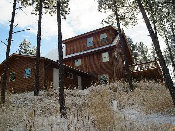 Unique and peaceful Cedar log home located in the heart of the Black Hills. This meticulously kept home offers comfort and quality living as a year round home or a get away. Located just two miles from Pactola Reservoir and less than a 20 minute drive to Rapid City offers a outdoors person a paradise. Fishing,hiking and hunting right outside the front door. Built in 2006 the home offers a two story great room, hickory flooring in great room, kitchen and dining area, hickory cabinets in the open kitchen equipped with stainless steel appliances, formal dining or a casual breakfast bar, gas fireplace in great room. The spacious master bedroom is located in the loft area which boasts a walk in closet and private bath with a tiled shower and comfortable jetted tub for relaxing. Lower level has been recently finished to include a family room with a wet bar and Murphy bed, third bath and third bedroom. All doors are raised panel,767 square feet of deck 230 square feet of which is covered.