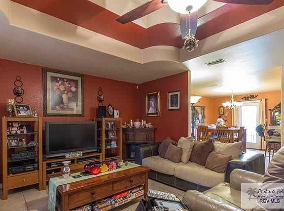 Rural living and access to Los Fresnos schools is a winning combination with this 4-bedroom, 2-bath home. Located on a 1.0-acre lot, this traditional home is well-kept and move-in ready. The open floor plan is warm and inviting, with extra seating at the kitchen bar area. The kitchen has ample storage space, a work island and a pantry. Other features include tray ceilings in the master bedroom and family room, a screened-in outdoor seating area, and a recently replaced roof (2017).