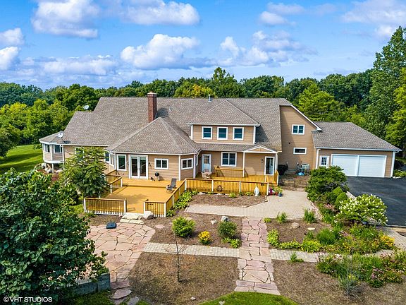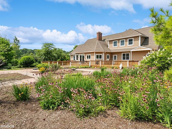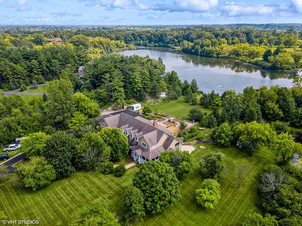Perfect for equestrians, entertainers and nature lovers, this property allows you to roam and dream, yet keeps you close to shopping, dining, and entertainment! The beautiful farmhouse has extensive windows throughout, sun pours through every room. Finished walkout basement! The home boasts 6 beds and 7.1 baths! This special home has only had two owners and there are so many improvements - Hardwood floors throughout 1st and 2nd floors, a Three-Season Room, a new Back Deck, gorgeous wood-trimmed Anderson windows, NEW asphalt driveway and a newly painted exterior. The front porch, recently screened-in resulting in a 28' x 22' outdoor area, takes you in to the two story foyer, which flows in to the two story living room. The kitchen, with a beautiful view of the lake, is totally NEW with custom white cabinets, Farm sink, Quartz counters, Stainless Steel Samsung appliances, 7'x7' pantry, oversized island, and spacious eating area! The formal dining room can accommodate even the largest of gatherings. Take your choice of Primary Suite on the main level with a private sitting room and office attached, or the 2nd floor Primary Suite! The finished walkout basement is great for entertaining or an in-law suite. It measures 3976 sq ft and includes a huge Rec Room with wood-burning Fireplace, a Gym, 6th bedroom, full bath, wet bar, and tons of storage! Walkout from the basement to absolute heaven! Beautiful grounds with a pond, wildflowers, and a sandy beach. The property has plenty of room for a barn and the ability to have several horses, geese, chickens - you name it! The lake has a diving platform and is great for kayaks, canoes, etc. Lake County forest trails for walking and biking only a half block away. Walk to the dog park on Fairfield and 176! Deer Park and Vernon Hills shopping nearby!