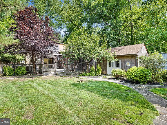 Charming and private 3 bedroom, 1.5 bath cottage in Ardentown on a beautiful lot backing up to common land. The spacious foyer entrance leads into the cozy living room with beamed ceiling, floor-to-ceiling stone fireplace, and random width hardwood floors. There's a dining area with stylish chandelier that opens to the updated kitchen featuring cream colored wood cabinetry, tile floors and backsplash, and has Anderson sliding glass doors to the back deck with hot tub. Just off the kitchen and dining room is an addition featuring a large family room, powder room and laundry area. This addition has vaulted ceilings, casement windows, two skylights, and wood floors and has access to both the back deck and the charming screened in side porch that overlooks the woods. Upstairs features an expanded primary bedroom with 3 closets, 2 additional bedrooms (one with vaulted ceilings), and a full bathroom with a shower/tub combination and an updated vanity. Space continues in the detached building (16'6" X 18'3" with electric) and tons of potential...possibilities include extra storage space, workshop or converting it into a studio/workout space/bonus area! This property is beautiful with a spacious yard featuring thoughtful gardens and walkways. Most windows are replaced, many Anderson windows, gas hot water heater 2017, gas heat and central air conditioning 2012, sump pump and vapor barrier added to crawl space (2 access panels). Don't miss this charming home! The current land rent is $2,190 which includes property taxes and weekly trash/recycling pick up.