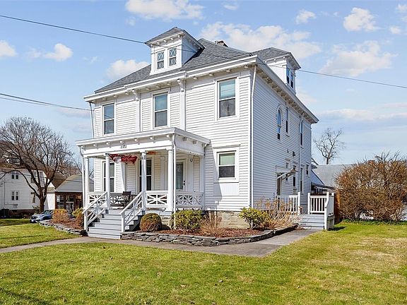 This meticulously maintained property is the perfect combination of old and new! Nature enthusiasts will delight in the exquisite landscaping, flourishing blueberry bushes and the convenient watering system utilized for the multiple raised beds! The inviting front porch, freshly built with composite columns is the perfect spot for your morning coffee! Kick off your shoes and hang up your coat in the spacious foyer! Experience cozy nights year round watching TV and building puzzles in the Adirondack room complete with a live wet bar and a wood stove! The updated kitchen offers an island, pantry, newer appliances, and a breakfast bar. Hardwood floors, natural woodwork, and a bar/beverage station in a very spacious living room allows for a cozy space your guests will love. There's a half bath on the first floor for added convenience. The second floor offers four spacious bedrooms and two full bathrooms. The finished attic provides additional flexible space for your unique needs. Located close to everything, this residence offers convenience without sacrificing tranquility. Most furniture is negotiable. Previously, this property was commercial as well as multi family!