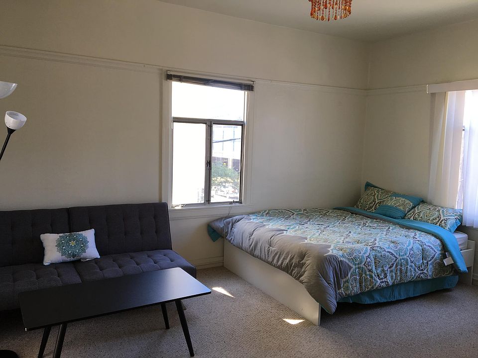 A 19-unit 3-story apartment building. The Sunny 1-bedroom is about 600 sq.ft. It's located in a nice courtyard garden building, 3 blocks to MLK, about a 5-minute walk to the downtown Berkeley, BART and City Hall. An approximate 10-15 minute walk to U.C. Physical Address: 2322 Haste St., Berkeley, CA 94704 Nearest Street Intersection: Dana St. & Ellsworth St. Open House: Weekdays 1:00pm~1:30pm Please call Ken @ 510.809.6929 for viewing Apartment features include:(Max. for 2 people) * Carpet floors nearly throughout * Gas Range, Refrigerator. * Lots of windows for natural light * Coin laundry on-site! * Parking Fee extra $ 95.00 per/month, (if available) * Water & Garbage services included with monthly rent * Vacant Now. Move-in Cost: (Furnished Studio Unit) 1st Month's Rent $ 1800 Refundable Security Deposit $1,800 Move-in Amount $3,600.00 Some notable terms and conditions (i.e., the fine print): One-year lease term required. Smoke-free apartment. Sorry, no pets or water-filled furniture. Good credit rating needed. A credit check performed for each resident.