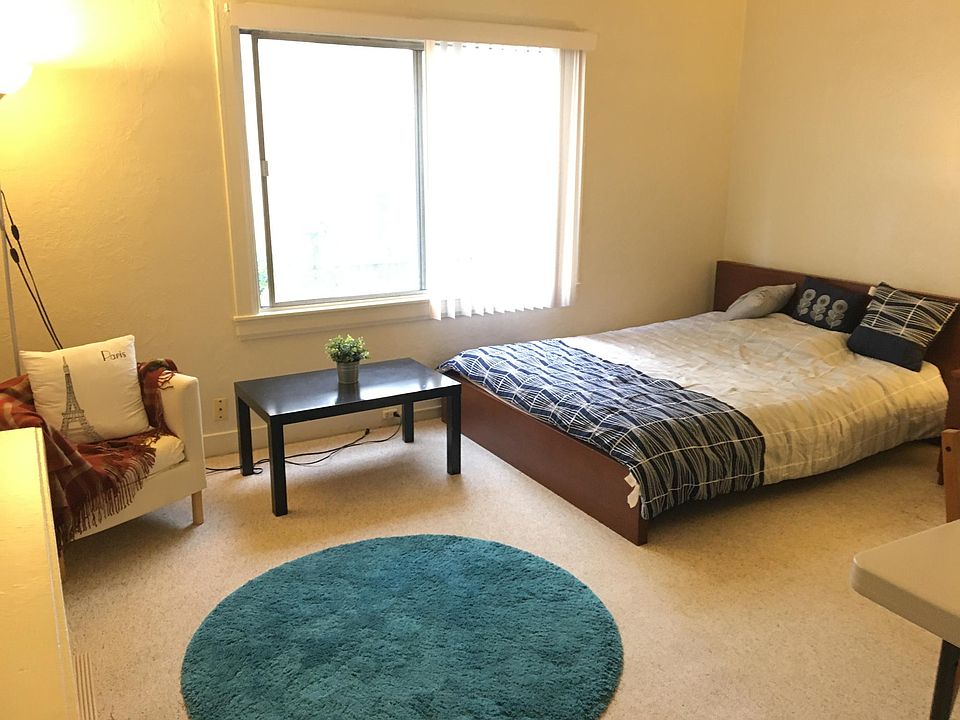 Great Location! Just several blocks to U.C. A Charming Spanish Mission Style Building. This Studio unit is about 420-450 sq.ft. Bright and sunny with a lot of windows and has a larger closet space. Convenient to UC Berkeley, Shattuck Ave., Telegraph Ave., Shops, School, & BART. Physical Address: 2322 Haste St., Berkeley, CA 94704 Nearest Street Intersection: Dana St. and Ellsworth St. Open House: Apartment features include: * Carpet or Hardwood floors nearly throughout * Full-size kitchen with eating area. * Plus gas range and refrigerator. * Lots of windows for great natural light * Coin laundry on-site! * Parking available at extra cost. $95.00 per/mo * Water & Garbage services included with monthly rent * Available: now Move-in Cost: (studio) 1st Month's Rent $ 1,800-1,850 Refundable Security Deposit $1,800-1,850 Move-in Amount $3,600.00-3,700 Some notable terms and conditions (i.e., the fine print): One-year lease term required.Smoke-free apartment. Sorry, no pets or water-filled furniture. Good credit rating needed. A credit check performed for each resident. Can't make the open house? No problem!