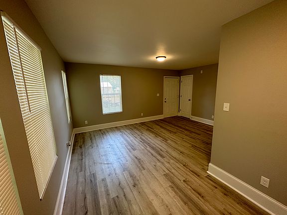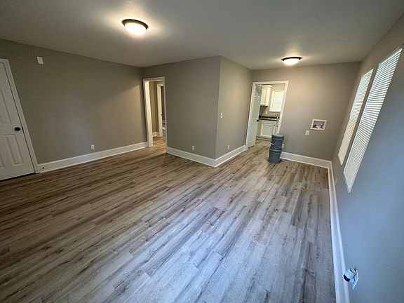 Fresh light gray paint & stylish plank flooring for easy upkeep