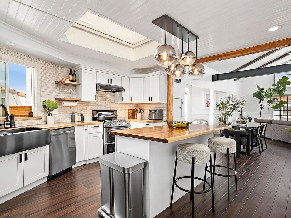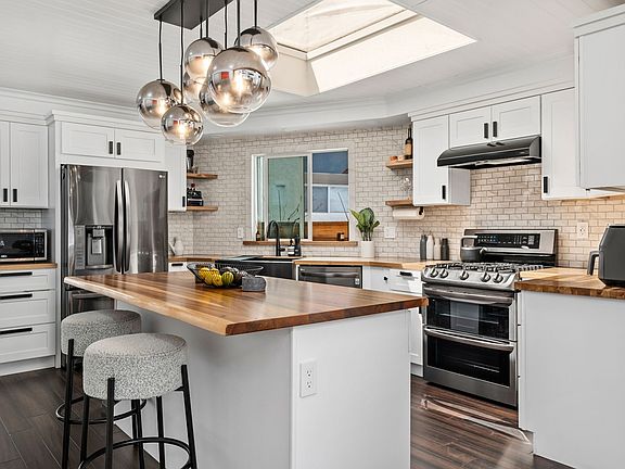 Welcome to this one of a kind luxury townhouse located in the Alta Verde community, overlooking the Legends Golf Course in the La Costa neighborhood of Carlsbad. Walk in the front door to gorgeous wood floors, an open staircase leading upstairs to the spacious living room with vaulted ceilings, fireplace and floor to ceiling windows! The kitchen features butcher block acacia countertops while the center island stands out with a live edge acacia counter. Black stainless appliances are the perfect accent pieces for white shaker cabinets with matte black hardware while Costa Rican teak beams define the space. Refrigerator with ice and filtered water, separate built in mini wine fridge in center island, dishwasher, Gas range and deep farm house kitchen sink. A full upgraded bathroom hidden behind a faux bookcase is discrete as it can be. Head out to the balcony to enjoy a coastal breeze. Downstairs walk into the primary bedroom which is spacious and filled with natural light. Featuring an ensuite lux spa bathroom with cedar wood surrounded deep soaking tub, separate walk in shower, dual vanity and diamond shaped marble tile throughout. Walk in closet with built in organization. Attached 2 car garage ensures convenient parking and easy access to your vehicle, equip with electricity to power car charging (just bring your car adapter). Full size washer and dryer and AC included. Alta Verde is a quaint enclave of 15 homes in a gated community w/ community pool, spa & BBQ area. All this conveniently located near La Costa Town Square and walking distance to The Beacon Shopping Center, top rated schools, restaurants, Omni La Costa Resort, & recreational hiking trails.