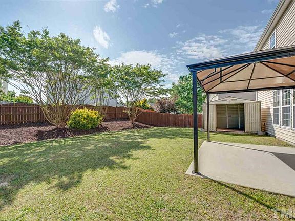 Well maintained home in Edgewater offers an immaculate yard & spacious floorplan. So many great features; new interior paint, new black stainless steel kitchen appliances, oversized garage, huge 15x22 master suite, open family room/kitchen layout & separate living/dining room/foyer accented w/ hardwood-laminate floors & a scraped finish. Outside you will find a fenced in back yard, storage shed and covered patio to enjoy the serene yard. Located close to shopping, Neuse River Trail, I440 and Raleigh.