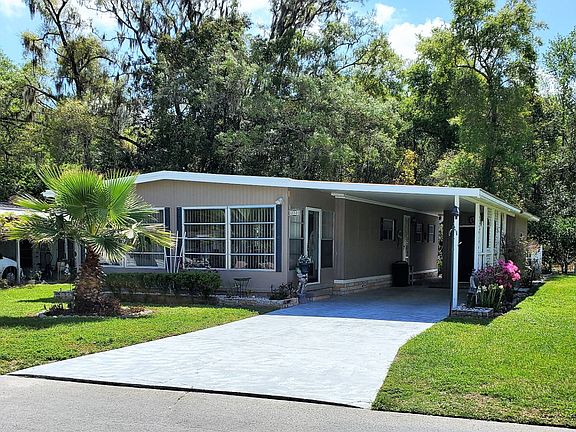This gorgeous double wide is located on a very quiet street with a wooded view behind it! Enjoy semi- privacy on your lovely patio with decorative features. Starting with great curb appeal and plenty of parking - you will find that it is even nicer inside! Everything remains - furniture, appliances, dishes and more. Move right into this tastefully decorated and well cared for home. Features a vinyl roof-over, HVAC in good condition, new flooring in kitchen/hallway and a new stove. The front sunroom has been opened up and adds additional living space not included in square footage. If you are looking for a great home that is move in ready and priced right - see this one soon! Monthly fee of $680. Schedule your appointment to see this home today!