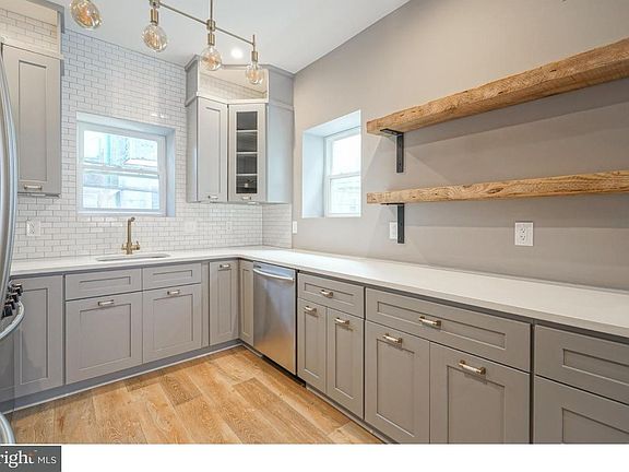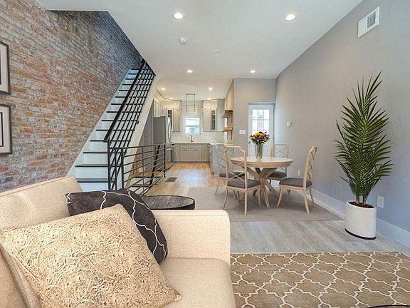 Meticulously curated designer touches are on full display in this stylish Point Breeze home that combines the soul and charm of a classic Philadelphia row home with luxurious new finishes. Enter the open & airy living room to find beautiful wood flooring, a stunning exposed brick accent wall, recessed lighting, and lots of natural light from the large front window and multiple rear windows. The sumptuous kitchen is outfitted with spotless grey cabinetry with under counter lighting, bronze & ivory handles, bronze accents, sparkling subway tile backsplash and gleaming white quartz countertops, custom reclaimed wood plank shelving, and a full suite of Samsung stainless-steel appliances that includes a 5-burner gas range, oven, microwave, dishwasher, and 33' refrigerator. The spacious and private fenced in rear patio is the perfect outdoor space for chilling, grilling, or relaxing. Upstairs, the large master suite is resplendent with exposed brick accent wall, closet, and a well-appointed en-suite bathroom with tiled walk-in shower. Another well-sized bedroom is joined by a serene hall bathroom accessed through a sliding barn door and boasting a shower/tub combo, beautiful custom-made iron vanity with stone countertop, and a window for natural light. The finished basement features an enclosed utility room with laundry hookups and an impressive bonus room with stunning exposed stone wall and amazing custom doors that would be ideal for a media room or office. You'll appreciate low maintenance thanks to a brand new heating system, air conditioning, plumbing, electric, and hot water heater. With an impressive 87 WALKSCORE, this home offers easy access to public transportation and is mere blocks from fantastic restaurants and cafes like Sardine Bar, the James Beard nominated Hardena, Three Eagles Cafe, Ultimo Coffee, Cafe Chocolate, Burg's Hideaway Lounge, On Point Bistro, and much more. Available December 1 Owner pays trash. Tenant pays water, electric, and gas