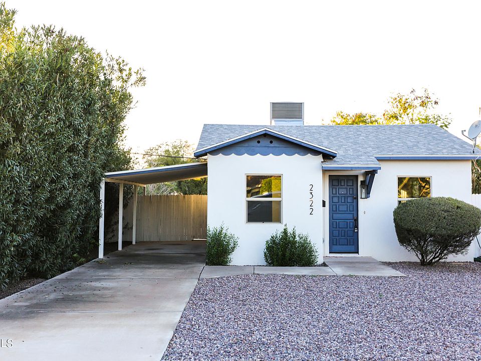 If you are looking to downsize into tiny home living, look no further! Charming fully remodeled 2 bed/1 bath home located in the highly sought after Coronado Historic District!! Minutes to downtown, Biltmore, Scottsdale, Tempe, Sky Harbor, and all the best restaurants and shops! Complete interior remodel including plumbing, electric, drywall, paint, dual pane windows, synthetic stucco, insulation, interior doors, and HVAC ducting. Durable plank laminate floors throughout. Bathroom includes a beautiful walk in shower and vessel sink. Kitchen features soft close shaker cabinets, designer backsplash, and quartz counters including a built-in breakfast counter! New stainless steel appliances and stub out for stack washer and dryer. One car carport could be easily enclosed into a garage. Patio slab could be enclosed into a large Arizona room. Plenty of backyard space to add a pool or a guest casita. Outstanding investment opportunity as long term or vacation rental or could make an excellent winter home!! Welcome home!!