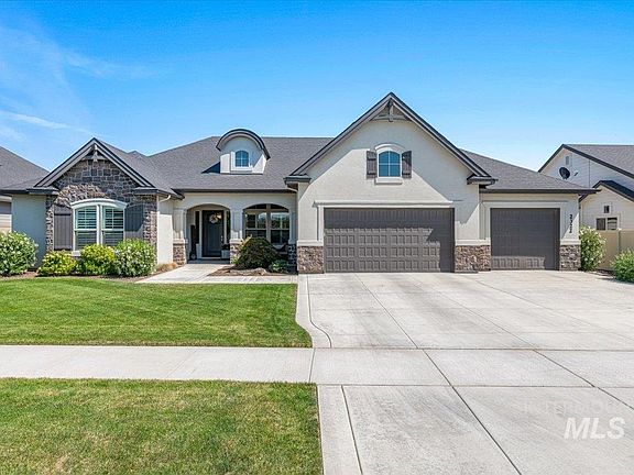 Gorgeous James Clyde built home full of high end finishes. Enjoy relaxing in the great room with vaulted ceilings, wood beams, floor to ceiling stone fireplace, a chef's kitchen featuring all Thermador appliances, double ovens, oversized built-in fridge/freezer, and accent lit cabinets to the ceiling. This home feels grand w/10ft ceilings, both natural & plantation shutters, & a split bedroom floorpan. Each room is oversized w/3 beds, 2.5 baths (1 is a Jack and Jill), office AND a bonus room. Entertain & BBQ in the spacious & private back yard with a vaulted covered patio, fan, gas stub, & tree lined back yard. The large 4 car garage has epoxy floors and a storage/mechanic's closet hiding the furnace, water heater, non-salt water softener/purifier combo (included), and the central vac (unit and attachments included). This is truly a a top of the line luxurious home with all the features you have come to love and expect and then some! Nestled in sought after Syringa sub w/tree lined streets & a community pool.