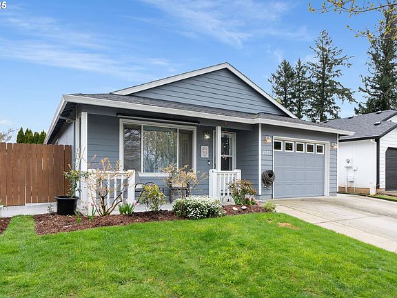 Welcome home to this charming 1,074-square-foot residence built in 2003. As you approach, you are greeted by a lovely porch, perfect for sitting outside and enjoying the beautiful garden plants. Upon entering, you’ll find an open floor plan that seamlessly combines the living, dining, and kitchen areas, creating a spacious feel throughout the home. The kitchen offers ample cabinet space and features a cozy breakfast nook with access to a patio right off the dining area, making it ideal for entertaining guests. This well-maintained home includes three bedrooms, one of which serves as the primary suite complete with a walk-in shower and backyard access. Additionally, there is a second full bathroom and plenty of storage options throughout.The garage can be accessed from the kitchen/living area, allowing for easy unloading of groceries. The backyard wraps around the property and includes a side patio along with a variety of mature plants, such as blueberries and jasmine. A shed provides good storage for gardening enthusiasts. Located in the North Central Gresham area, this home is conveniently located near plenty of shopping and dining options. Don’t miss out on this delightful gem; it won't last long in this friendly neighborhood!