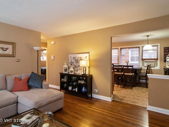 Totally updated and spotless 2 bedroom, 1 bathroom Condo located in close proximity to public transportation and major expressways. This lovely unit has a spacious eat-in kitchen featuring granite counter tops, stainless steel appliances, and beautiful Maple cabinets that provide plenty of storage. The inviting living room accommodates over-sized sectional couch seating and is perfect for relaxing and entertaining. The large sunny master bedroom has two double closets and the 2nd bedroom offers a double closet, as well. The full bathroom hosts a jetted spa tub & granite topped vanity. Other features include: hardwood floors, personal washer & dryer located in the basement, storage locker, one assigned parking space and is in close walking distance to shopping at Broadview Village Square. Additional overnight parking is readily available in front of the building. Turnkey ready, simply move in and enjoy this wonderful unit!