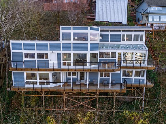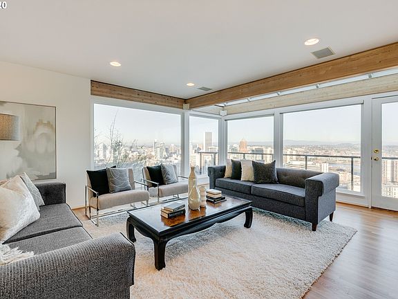 Views that take you so many places..the mountains, the city, the river all from the comfort of home. This serene custom designed property offers 3 levels of living spaces & provides several private home office options. Master suite w/soaking tub & huge walk in closet + 2 additional bedrooms & bathrooms are located on the lower level. Large attached 2 car garage includes work space & extra storage. Area below home for dog run or storage shed. Close to downtown, parks, OHSU & freeways. [Home Energy Score = 3. HES Report at https://rpt.greenbuildingregistry.com/hes/OR10111209]