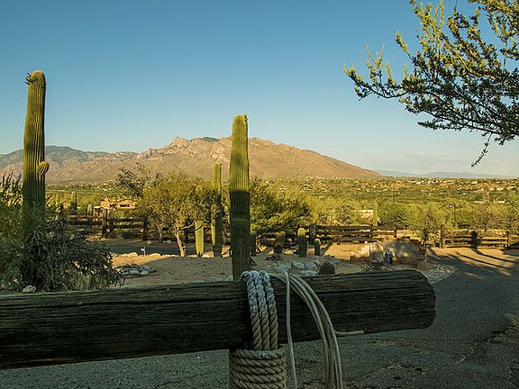 After you move in you'll continuously note these nice features: Awesome views . . The 53 saguaros . . A cozy fireplace . . Mesquite flooring in the kitchen and dining area . . Upgraded bathrooms . . Infinite Pool with an outdoor shower . . Horse facilities for 4 horses . . Large, mature eucalyptis trees . . Quiet and Serene . . City light views . . New Pella double pane windows . . Spacious Pantry and Laundry . . Dog run . . Huge fenced back yard . . A very functional upgraded kitchen . . Large front patio with views . . Separate Studio/Man Cave . . Facilities for chickens, goats, etc. . . Large fenced garden. This home is: "A Ranch in the City" . . . "A Million Dollar View" . . . "One of a Kind"!!!!