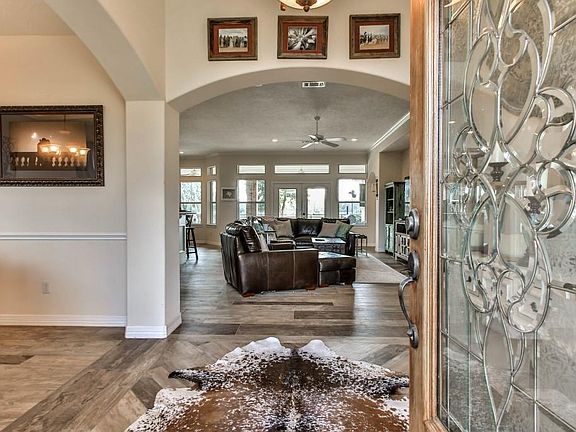 10.8 AG exempt acres w brick/stone 1 story perfectly located off of Bauer near 290 & 99. Home features open plan, high ceilings, tiled entry, liv, breakfast & kit, crown molding, coffered ceilings, split plan bdrm & ample natural light. Updated Kitchen: Granite, wood like tile floors, large island, long breakfast/serving bar, lots of cabinets, pantry, ice maker & breakfast room overlooking acreage. Office w built ins. Automatic gate, RV & horse barn. Workshop w concrete floor. Cattle Pens!