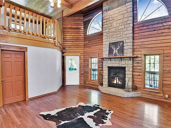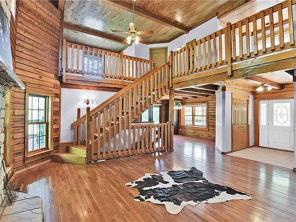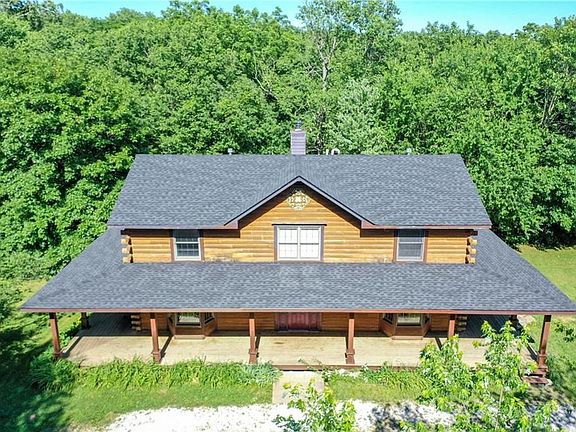 This secluded beautiful log home will take your breath away when you walk in the front door to a wide open floor plan with a stunning stone fireplace. The basement has 9' ceiling height to finish as you wish. Fully covered porches on the front and back of the home. The views from every window are amazing. This property stretches out over 51 acres with ponds and a creek that run through it. Abundant wildlife throughout the entire property. Spread out w/multiple out buildings. NEW A/C and thermostats for both UNITS!!