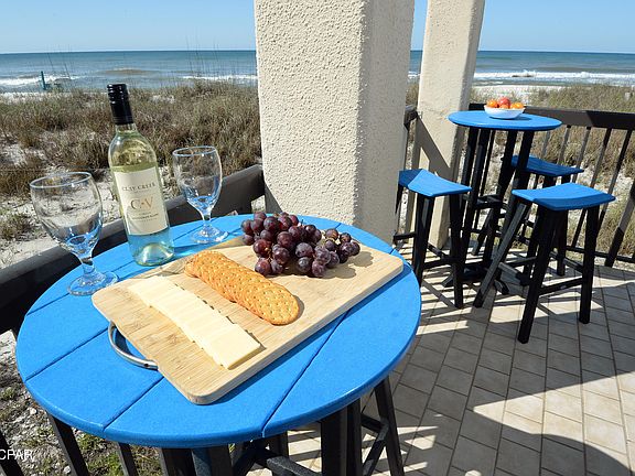 Experience true coastal living in this beautiful corner unit located in the desirable mid-rise B2 building at Pinnacle Port Resort! This ground-floor, 3BR/3BA condo sits right on the beach, offering unobstructed eastward and westward Gulf views from its wraparound balcony—perfect for enjoying breathtaking sunsets over the emerald waters or watching dolphins play in the morning while relaxing on the bistro setup.