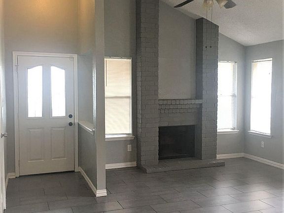 The photos will be uploaded tomorrow night. Cute as a button Tile flooring in all main areas. Carpets only in the bedrooms. Vaulted ceiling in family and breakfast area. Lot of windows bringing in natural lights. Spacious family room with wood burning fireplace. The bright and light breakfast area has a sliding door leading to the side yard. The kitchen features tile granite countertops, stainless steel stove and built-in microwave, double sinks and a good size pantry. Great size backyard and brand New fence. The house is ready for the New Family