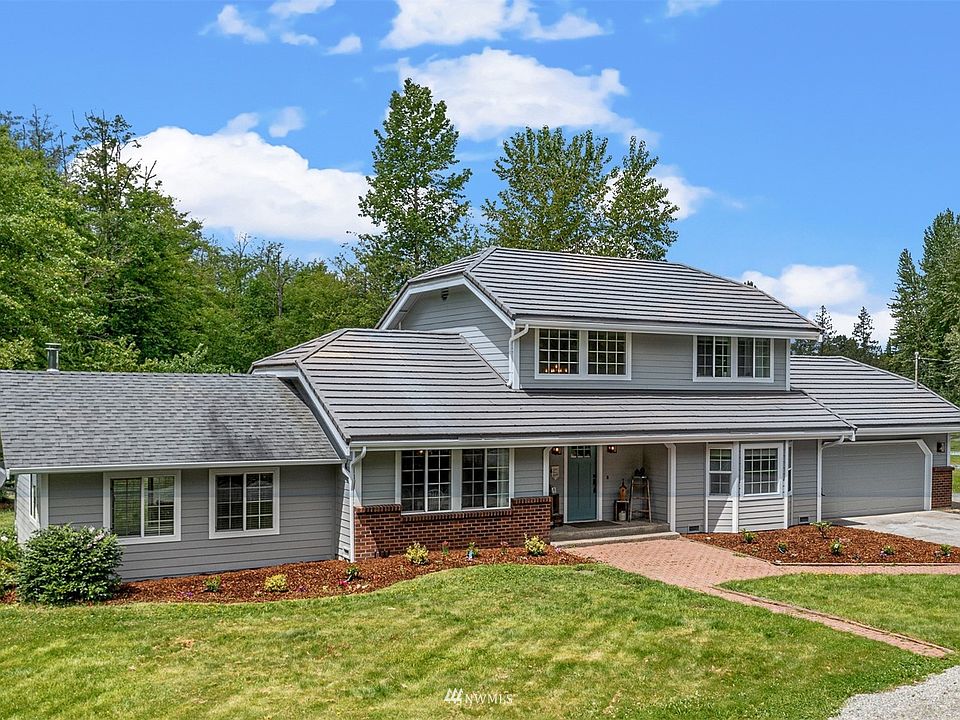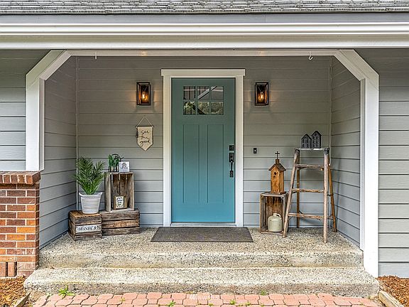 Updated home in gated Eagle Ridge! 1,882 sqft, 5 acres w/Detached Guest House! Main level open floor plan features farmhouse kitchen, butcher block counters & new appliances. Also on the main level is a bedroom, updated full bath, dining room, & utility room w/ample pantry space, storage & large utility sink. Living room features cozy woodburning stove. Second level has 2 more bedrooms & full bath. Step out the back door onto the LARGE covered patio, perfect for entertaining year round! The 400+ sqft ADU boasts full kitchen & 3/4 bath. The property includes new efficient furnace, tankless w/h, storage building, chicken coop, fenced garden, invisible fence & plenty of space to enjoy! Also includes private community beach river access!