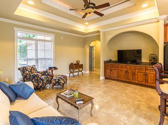 This is a must see! One of a kind custom built home offers trey ceilings with custom lighting in the den, breakfast room & master bedroom. This house is move in ready, fresh paint, new carpet in master bedroom. Garage freshly painted with no skid flooring. Several exterior doors & windows replaced. Beautiful cabinetry & gorgeous granite in the den, kitchen & all baths. Master bedroom is opposite end of the house from other bedrooms. Very open floor plan. Back porch is wired for a hot tub. Large back yard with privacy fence. Wall construction is 2x6. Just a few miles & you are on the Baldwin Beach Express. Home warranty up to $500.00 provided at closing.