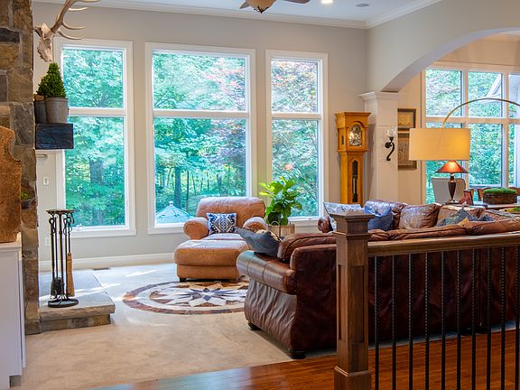 This amazing ranch will make you feel peaceful and at home the moment you enter. The wooded views are so serene and private. Abundance of natural light, open floor plan, vaulted ceilings. Stunning stone fireplace, gas cooktop, home office. Walk out basement, flex/bonus room over garage can be 5th bedroom or craft room, screened porch. All of this on park like mature wooded setting with huge back patio and wood fired pizza oven. Home/property surrounded by 5.5 acre mature wooded preserve that can't be built on - it's like you are living in a 7 acre private woods. The views in every season are spectacular. $3K in new landscape plants just added. Hot tub included. 12x17' Storage room under house with outside entrance for mower, patio.