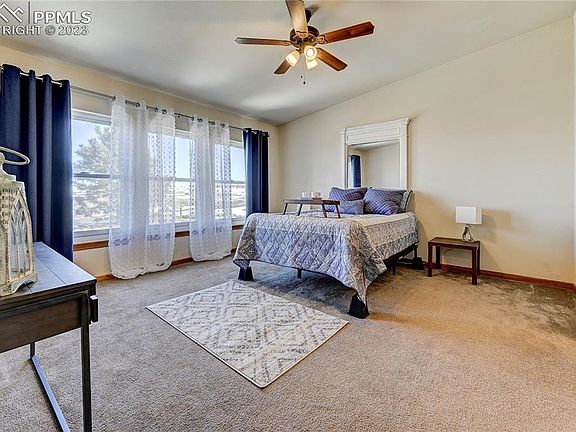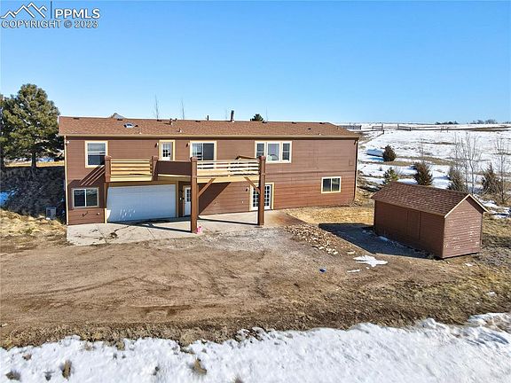 Stunning mountain views of Pikes Peak sitting on 88 acres! Ready for country living, equipped with a two-stall barn, with a built-in chicken coop. The barn has 220 volts wired to the panel, so you could turn it into a large workshop, or she shed for all your projects. This peaceful property is crossed fenced with 3 rotational pastures & has a round silo with cement flooring. Step into your own little slice of heaven in this ranch style home that features vaulted ceilings in the family room where you can enjoy the beautiful mountain views while staying warm & cozy with the wood burning stove. The spacious kitchen has cabinets galore, a gas cook top & beautiful stainless steel appliances. Gather round the breakfast bar to enjoy your coffee in the eat in dining area where you will find modern lighting equipped with a pop out fan or simply take in the views from the built in nook. The primary bedroom has 2 walk-in closets & a 5-piece ensuite bath with a large soaking tub! The other 3 rooms are located on the opposite end of the home and share a full bath. Just off the dining area step out the sliding glass door onto the large deck to take in the stunning views & fresh air. There is also an additional door from the deck that enters into the utility room where you will conveniently find a large sink, washer, dryer & cabinet storage. Make your way downstairs to the unfinished, walk-out basement that has 10 ft. ceiling & French doors to the lower large patio space. Through another doorway you will find an oversized 900 sq. foot, tuck under garage where you have plenty of space to keep all your toys! The front & back yard are equipped with a sprinkler system & you will find mature trees around the home with a drip system. The home is well constructed to UBC/IRC standards with solid quality. You can enjoy the benefits of escaping the city noise on this large peaceful property, and you're only a 7-minute drive to the town, where you will find all the necessary amenities.