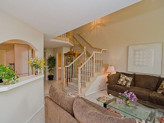 Bank Approved Short Sale!! Feel the ocean breeze in this upscale home located in the desirable Capri community, in turnkey condition! Boasts a light and bright open floor plan with soaring cathedral ceilings, glass fireplace, gorgeous windows, and formal dining room. The downstairs also has an enclosed kitchen with ceramic tile counter tops, four burner stove, and tons of counter space. The master bedroom features a private balcony, walk-in closet and master bath with dual sinks. The large brick patio includes a built-in barbecue, patio cover and glass fencing. Not to mention, spacious two car garage with direct access. The Capri community has beautiful views of Saddleback valley, resort style pool and spa, and miles from the beach!
