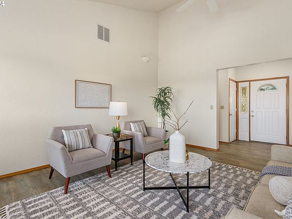 This home starts with a million-dollar view of Mt. Hood, St. Helens and more. Light and bright with main floor living and an opportunity for separate living with a full daylight basement this custom home also features energy-saving ICF construction and a 50-year tile roof. You will appreciate the vaulted living room with windows to the east and easy-care laminate floors. The spacious kitchen has new stainless appliances, a dining area, and a comfy sitting area to gather and connect. Outside you will find a large deck with glorious views and a big, fenced yard. The long drive to the back of the home contains an easement area (never used) and provides ample space for RV or other activities. There are 3 bedrooms + 2 bathrooms on the main floor. Downstairs you will find a large great room, a small wet bar area with space for a table or other options like a pool/ping pong table + bedroom and bathroom. The unfinished shop area is an amazing space with limitless possibilities. New carpet and fresh paint, move in and enjoy all the neighborhood has to offer with private cul de sac living, the nearby Snyder Park, and Murdock City Park. Oh, did we mention the view!