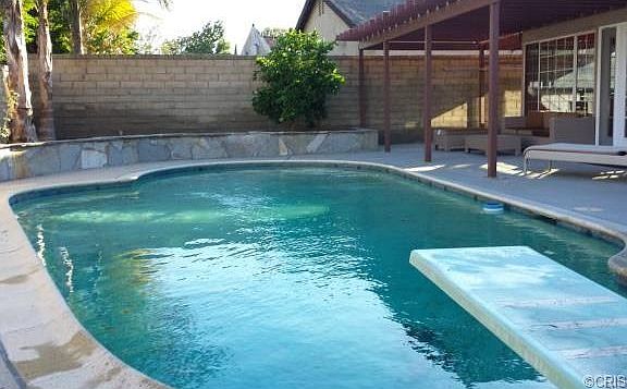 Great VALENCIA POOL HOME in NON-HOA community (Tempo Tract). Close proximity to shopping centers, excellent schools, freeway, Henry Mayo Hospital, etc. Priced to Sell!Cozy Fireplace in Living-room for those cold nights. The Bedrooms closets have built-in Shelf Organizers. New/Stylish Ceiling Fans throughout the home. Skylight in Entry Hallway. 2 Car Attached Garage and is set up for Washer/Dryer. Newer Electrical Panel in Garage. Slate stone work in front on the home and also around the Pool Area. Fresh paint throughout. Newer Roof, Copper Plumbing, New Water Heater, Plantation Shutters, Laminated Wood-like Flooring throughout the home. Remodeled Kitchen includes: Corian Counters, Newer Cabinets, Built-In Desk, Island with plenty of Storage. The Kitchen is surrounded by Dual Pane Windows to bring in Natural Light. Master Bathroom and Hallway Bathroom have been remodeled as well... this home has it all... Location, ,location, location!