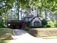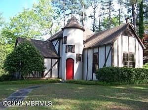 Charming English style 3 bedroom, 2 bath home with brick floors in Dining Room, lovely wood features, exposed beams, and even a turret! Large lot with hot tub and storage shed to remain. Bonus room downstairs could be 4th bedroom.