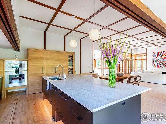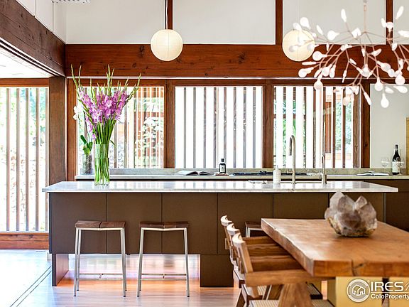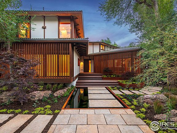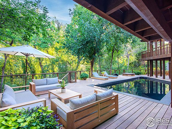 One of a kind Private Retreat in the heart of Mapleton Hill. Stunning Architectural Design grace this private and secluded gated estate which features 5 Bedrooms / 6 Baths + Office, Gym, Mudroom, Living and Great Room (all above grade). It is perfectly located close to Boulder's best hiking trails and a short stroll to the restaurants and coffee shops of Pearl Street Mall. The quiet and peaceful outdoor space surrounding the property make this home a sanctuary of serenity and sophistication. In addition to top tier finishes, this spa-like property boasts a saline swimming pool, cedar hot tub and sauna. No expense was spared in completely outfitting this home with the world's finest finishes and materials rarely seen in Boulder homes. The kitchen offers Gaggenau Appliances, Bronze Metal Cabinets, and Taj Mahal Quartzite throughout. The home also showcases Cocoon Bathrooms by Piet Boon, imported Japanese tile and a Tadelakt Shower in the Primary. In addition, the home is located on an over 20k SF verdant, wooded lot with a creek running behind the house and offering views of Red Rocks and the Foothills. This property allows the owner to feel like you are in your own private nature preserve, while only minutes from downtown Boulder. Oversized 2 car luxury garage. The home was originally designed for renowned Tibetan Buddhist Meditation Master Chogyam Trungpa Rinpoche, the founder of Naropa University and Shambala. There simply is nothing else like it.