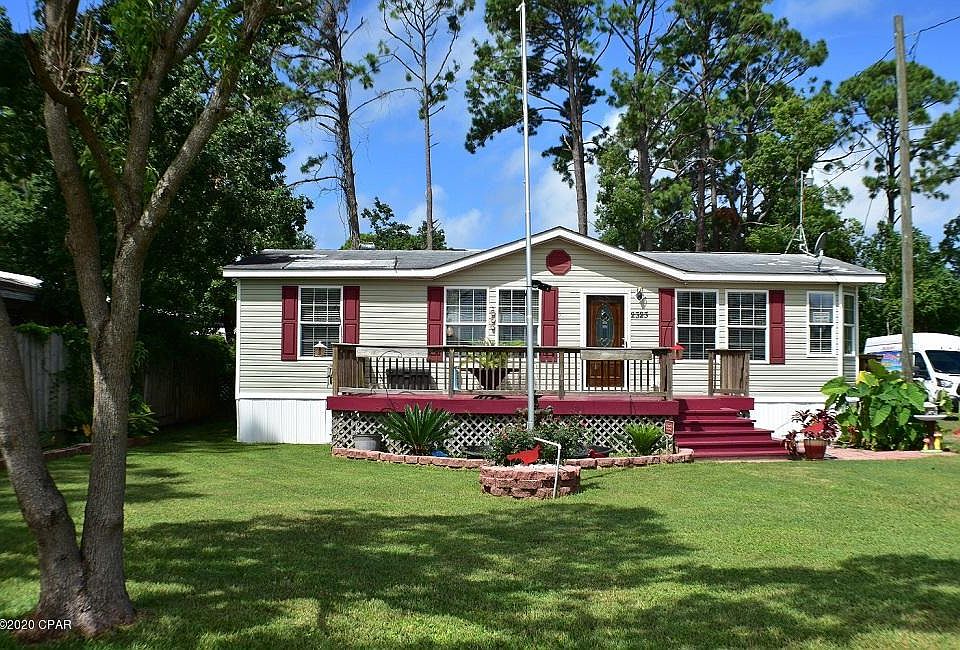 New metal roof being installed on this 3BR/2BA modular home! The seller also put new carpet in the master and second bedroom. Features include wood laminate and ceramic tile flooring, walk-in closets, jacuzzi tub in the master bath, crown molding, a Trane 3-ton AC, a two car carport in the back, and the seller says there is sewer hookup available. This home is conveniently located in the heart of Panama City Beach near shopping, dining, nightlife and the Navy base. Great curb appeal and the seller is leaving the flag pole too! All info is approx and must be verified by Buyers if important.