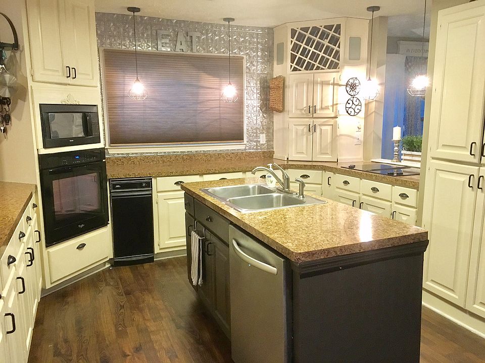 - Kitchen Features: Cabinets White, Island, Breakfast Area, Breakfast Bar, Counter Top - Laminated