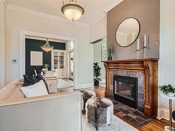Welcome to your dream Victorian home nestled in the charming neighborhood of Sloans Lake! This meticulously maintained beauty boasts an enchanting blend of original features and modern elegance. Step inside to discover the allure of hardwood flooring adorning the main floor, complemented by an inviting fireplace that can be enjoyed for cozy Colorado evenings. The main level includes both formal and casual living spaces, ideal for entertaining guests or enjoying quiet evenings with loved ones. A dining room adorned with original built-in shelving sets the stage for gatherings. The remodeled kitchen has stainless steel appliances, a charming eat-in breakfast nook, and walk-in pantry. A dedicated laundry room and mudroom area offer convenience and organization with a utility sink and storage. Upstairs you will find two bedrooms, accompanied by a luxurious 5-piece bathroom, and two walk-in closets providing ample storage. Step outside to your private oasis, where you will find a stamped concrete patio with multiple seating areas, bistro lights, and a gas fire pit perfect for alfresco gatherings. A separate office connected to the detached garage offers a tranquil workspace complete with shelving, a built-in desk, and an AC unit for year-round comfort. The garage itself boasts abundant storage shelving, an EV charger, cabinetry, and two sheds attached on the exterior, catering to all storage needs. This home is not just beautiful; it's functional and ready with recent upgrades including a new roof (2020), new furnace, and central AC (2023), as well as modern amenities like Amcrest security cameras and newer windows (2006). Conveniently located near Sloans Lake and the Highlands with easy access to I-25, this Victorian gem seamlessly blends classic charm with contemporary living for the ultimate lifestyle experience. Don't miss your chance to make this your forever home!