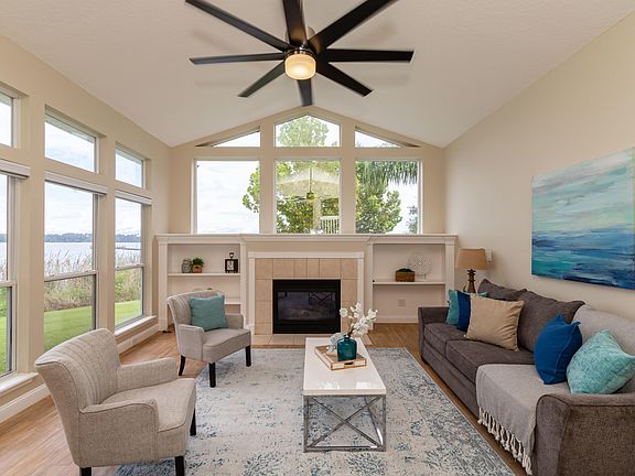 If Sunsets are your thing, this is the spot! Nestled right in the west facing sweet spot of Doctors Lake with a shared dock w/boat + jet ski lift. This is one of just a few Eagle Harbor homes that are truly unobstructed waterfront. With 6 beds, 5 baths and a bonus room there is plenty of room for the whole family and all the guests you can handle. Double tray ceilings soar as high as 13 feet above you. Sitting up high, this home has never flooded. With a split-configured 3 car garage, you have storage space for your toys or that project car you've been working on. Eagle Harbor elementary is your Grade A school in the neighborhood, championship golf course, multiple pools and splash-parks and state of the art clay tennis courts, this is the perfect place for your family to call home