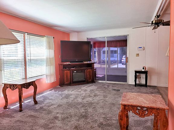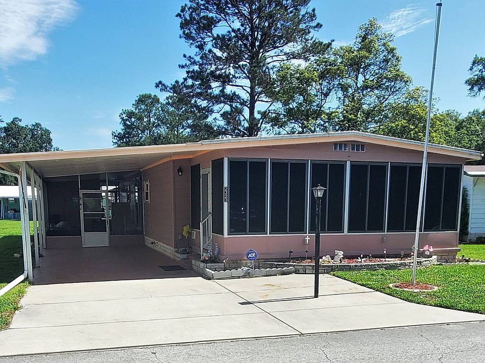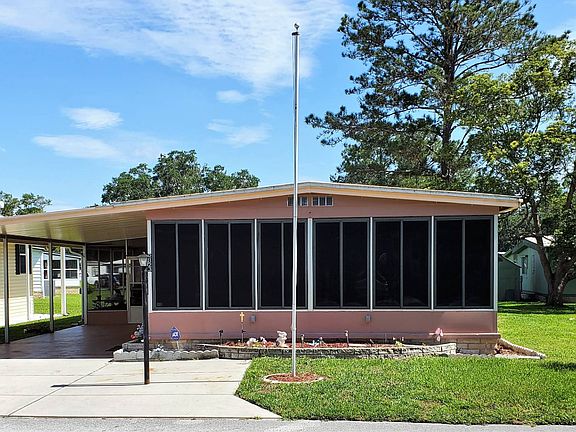 NEW ROOF! NEW WINDOWS! HUGE COVERED PATIO! There is much to love about this wonderful 2 bedroom, 2 bath double wide home! Situated on a quiet street in the center of the park with plenty of parking and gorgeous backyard. Screen porch located at carport with attached shed and laundry. This spacious area is a great place to hang out with neighbors and enjoy the Clover Leaf Farms lifestyle. Enter inside through brand new sliding glass door to a spacious kitchen with a new gorgeous farmhouse sink and enormous amount of pantry storage. The kitchen counters were recently resurfaced and look like new. This home has new electric panel, all new double paned replacement windows throughout the home and a new vinyl roof-over in 2018 with warranty. The sunroom located on the front of home has tinted vinyl windows. There is lots of new in this home including vertical blinds in bedroom, kitchen range, microwave, dishwasher and a new shower in Master Bath and 2x new taller toilets. The HVAC unit was new in 2012 and is regularly serviced. Home is wired for ADT security. New owner just has to call the company. If you like a nice outdoor place to entertain you will love the large covered patio in the back yard! So much to love about this home. Don't miss your chance to see it. Located in the age qualified community of Clover Leaf Farms. Located north of the Tampa/Clearwater/St. Petersburg metro area, Clover Leaf Farms is a 55+ retirement mobile home community that is big on amenities. Offering two spacious clubhouses, billiards, shuffleboard courts, pickle ball and catch/release fishing you won't be bored here. There is also a dry sauna, indoor heated swimming pool, and a whirlpool-spa-hot tub as well as a large heated outdoor pool and new fitness center being built. This Brooksville, FL mobile home neighborhood will never leave you wanting. Clover Leaf Farms also provides its residents with a pet friendly environment that also includes RV storage, a scenic picnic area, and on-site management. With so much to offer, you can't go wrong when you choose to live at Clover Leaf Farms.